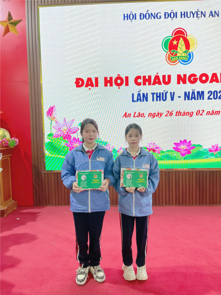 🍀 Rất vinh dự và tự hào khi em Lê Quỳnh Anh chi đội 5A và em Phan Khánh An chi đội 5B được đại hội biểu dương Cháu ngoan Bác Hồ xuất sắc tiêu biểu trong học tập, rèn luyện và tham gia công tác Đội.