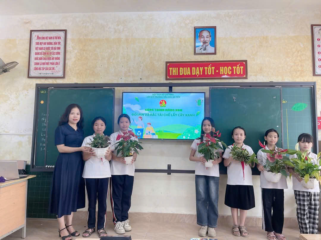 🍀Thực hiện Kế hoạch năm học 2024-2025, Liên đội trường Tiểu học An Tiến xây dựng Công trình măng non "Đổi pin và rác tái chế lấy cây xanh", phong trào đã thu hút đông đảo đội viên, nhi đồng trong liên đội tích cực tham gia. Phong trào nhằm giúp các em HS hiểu được giá trị của việc phân loại rác thải, tái sử dụng rác tái chế, từ đó hình thành thói quen tốt: không vứt rác bừa bãi, biết cách bảo vệ môi trường ngay từ những hành động nhỏ.
