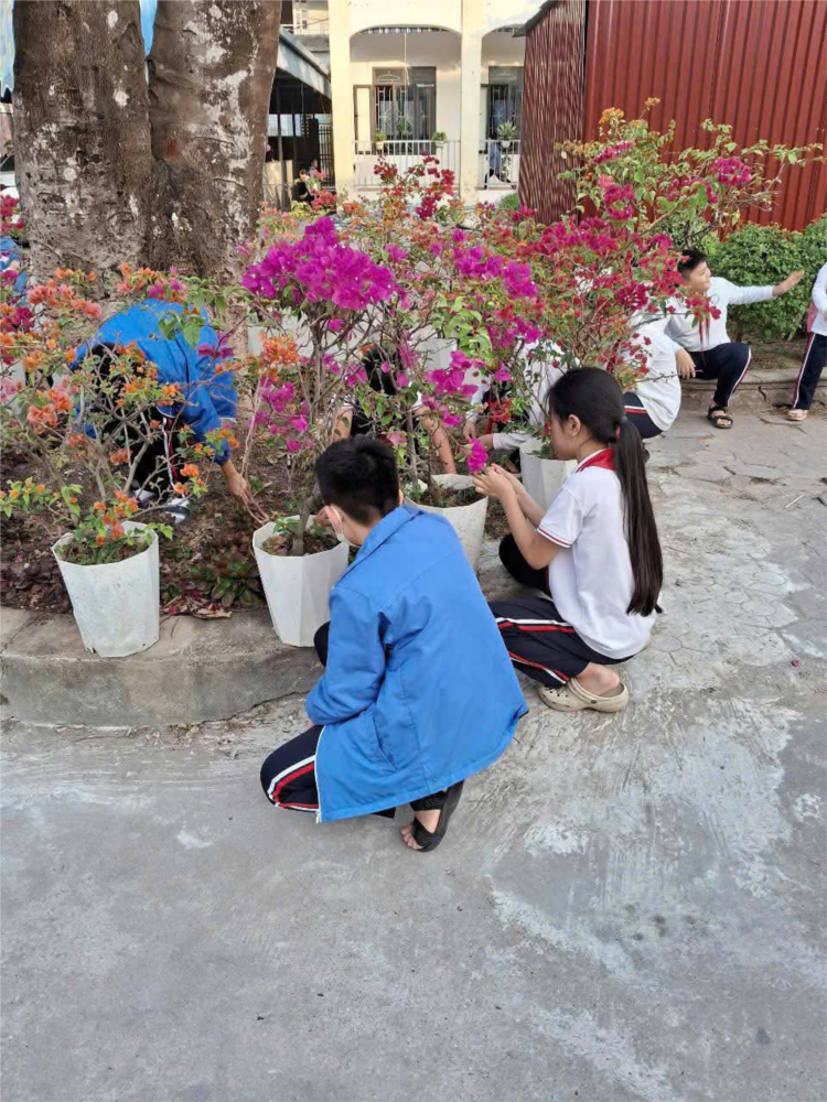 ☘️Học sinh thực hiện dọn vệ sinh sân trường theo khu vực được phân công. Các em thực hiện việc thu gom rác thải, lá cây, nhổ cỏ ở các bồn cây, bồn hoa,… bỏ vào thùng đựng rác. Sau khi kết thúc hoạt động, học sinh rửa tay bằng xà phòng và thực hiện các hoạt động học tập tiếp theo.
