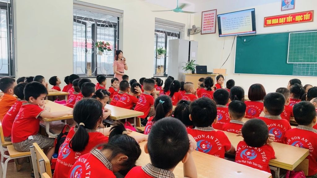 Đến với Trường Tiểu học An Tiến, các bé được xem video các hoạt động học tập của các anh chị Tiểu học và được trò chuyện với cô Phạm Mai Ly - giáo viên dạy lớp 1B. Cô Mai Ly giới thiệu về trường Tiểu học, về Lớp 1, về đồ dùng học tập và các hoạt động học tập, nội quy trường lớp ở Tiểu học khác ở Mầm non như thế nào? Qua đó, giúp cho trẻ có thêm hiểu biết về trường Tiểu học và các hoạt động học tập của học sinh Tiểu học. Từ đó, tạo cho trẻ tâm thế để sẵn sàng bước vào Lớp 1.