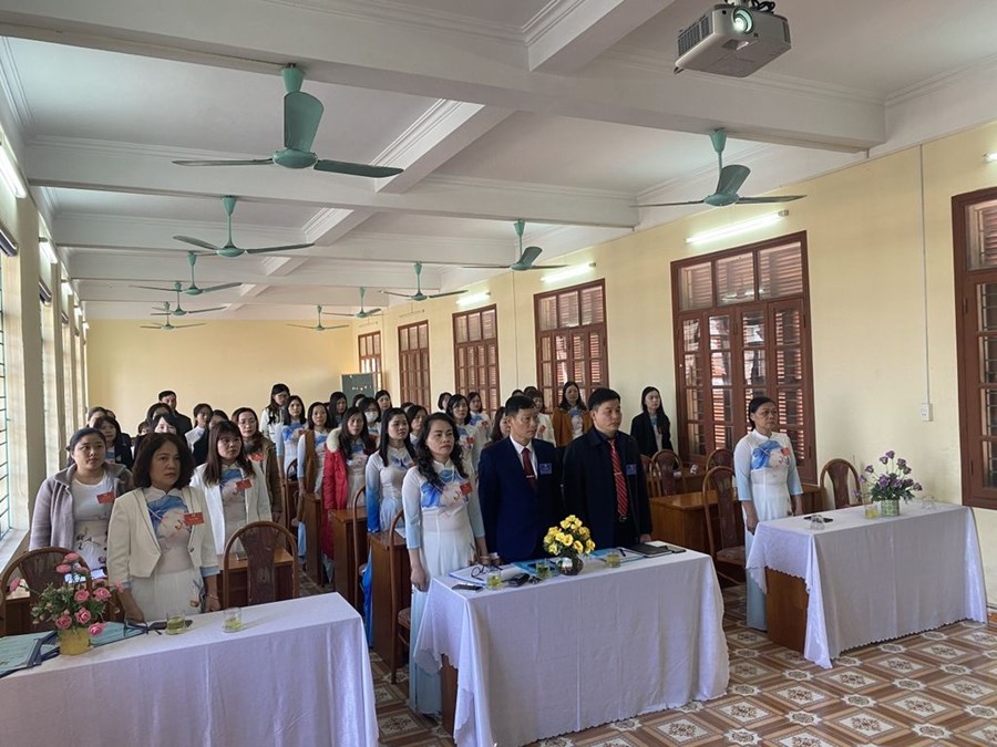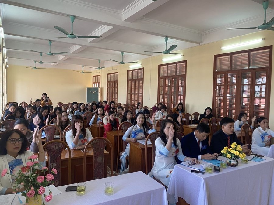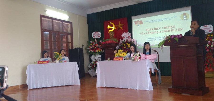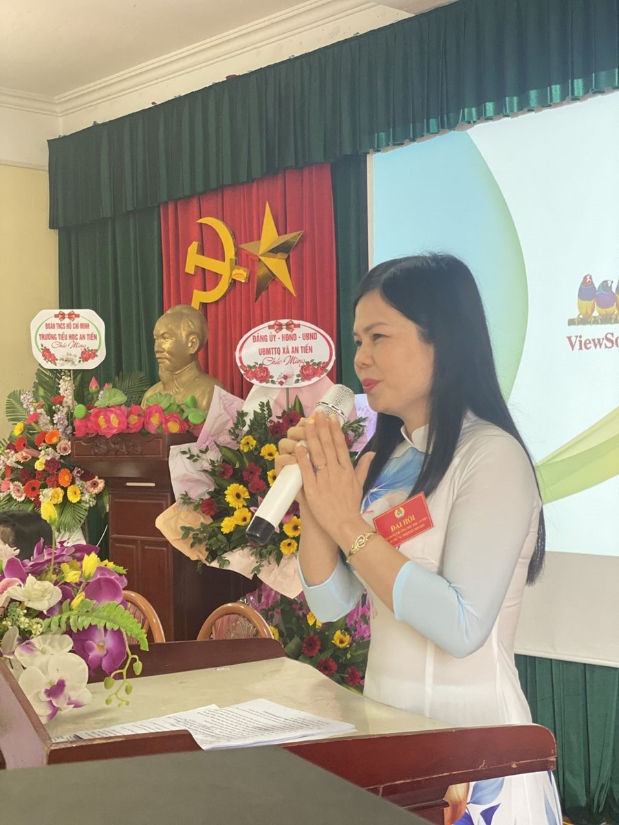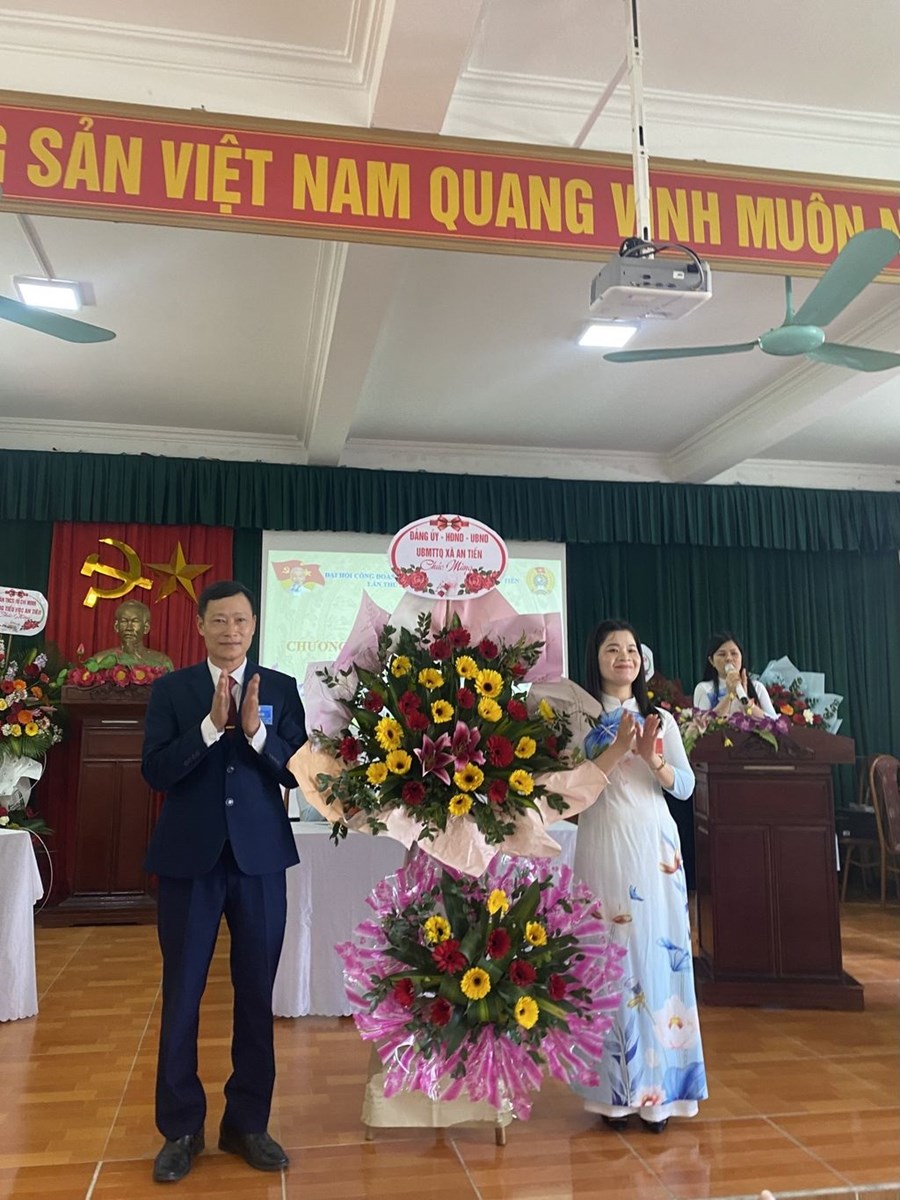 🌹🌹🌹Đến dự với Đại hội có đồng chí Nguyễn Trung Thành - Phó chủ tịch LĐLĐ huyện An Lão, đồng chí Đào Văn Đức - Bí thư Đảng ủy - Chủ tịch HĐND xã An Tiến, các đồng chí trong cấp ủy nhà trường cùng toàn thể 43 đoàn viên công đoàn đều có mặt đông đủ. Phần văn nghệ chào mừng gồm các tiết mục đặc sắc về Đảng, tình yêu đất nước, ca ngợi Công đoàn Việt Nam do đội văn nghệ xung kích nhà trường biểu diễn đã được đại hội cổ vũ nồng nhiệt. Sau lễ chào cờ trang nghiêm, đồng chí Nguyễn Thị Diệu - CTCĐ nhà trường khóa X đã trình bày báo cáo tổng kết của công đoàn trong nhiệm kì vừa qua cũng như những phương hướng đề ra cho nhiệm kì mới. Sau báo cáo là các ý kiến tham luận của đồng chí Nguyễn Thị Thanh Thủy và đồng chí Phạm Thị Nhinh. Các tham luận đều thể hiện rõ sự đồng tình, nhất trí cao của đoàn viên dự đại hội.