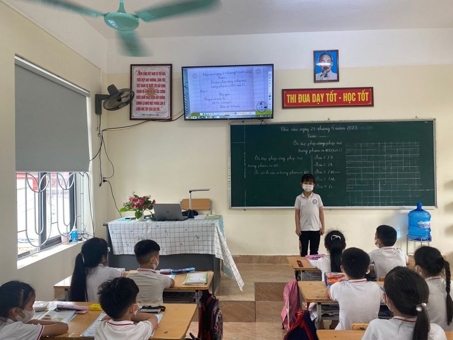 Thực hiện nhiệm vụ năm học 2022-2023, kế hoạch chuyên môn tháng 4. Chiều ngày 21/4/2023, tổ 2 + 3 Trường Tiểu học An Tiến thực hiện chuyên đề: " Vận dụng linh hoạt các phương pháp tích cực vào dạy Toán ôn tập" qua bài "Ôn tập phép cộng, phép trừ (có nhớ) trong phạm vi 100 (Tiết 2)". Tiết dạy do cô giáo Lê Thị Diễm Ngọc và các em học sinh lớp 2C thể hiện. Qua tiết học, học sinh được ôn tập lại kiến thức về phép cộng, phép trừ (có nhớ) trong phạm vi 100, giải toán có lời văn qua các hoạt động như: thảo luận nhóm, trò chơi học tập, các hình thức dạy học linh hoạt, cách chữa bài phong phú, đa dạng giúp các em chủ động ôn tập, củng cố kiến thức. Các em học sinh lớp 2C học tập rất sôi nổi, hăng hái phát biểu xây dựng bài. Cô giáo luôn quan tâm, kịp thời giúp đỡ, khen ngợi các em.