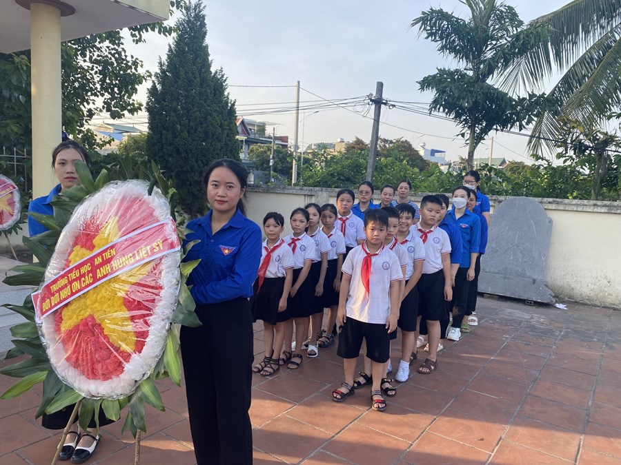 Nhân kỷ niệm 76 năm Ngày Thương binh, Liệt sĩ (27/7/1947 - 27/7/2023), chiều 26/7, Ban chấp hành Công đoàn Tiểu học An Tiến đã đến thăm, tặng quà các gia đình thương binh, bệnh binh là thân nhân của CB, GV, NV đang công tác trong nhà trường. Đồng thời BGH, BCHCĐ, Đoàn thanh niên và các em học sinh lớp 5 đã đến nghĩa trang liệt sĩ xã An Tiến tri ân công lao to lớn không gì sánh bằng của những người anh hùng liệt sĩ đã ngã xuống vì nền độc lập nước nhà.