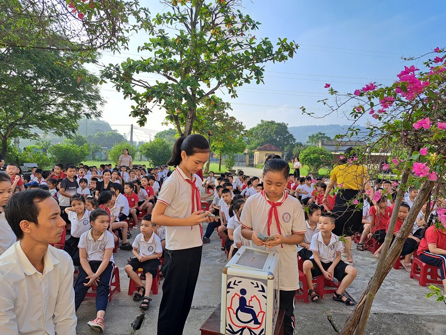 Được sự nhất trí của Sở GD & ĐT TP; Phòng GD & ĐT huyện An Lão, sáng ngày 03,04/10/2023, trung tâm Thắp sáng ước mơ tạo việc làm cho người khuyết tật đã về biểu diễn tại trường Tiểu học An Tiến.