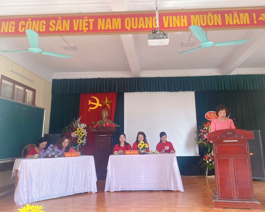Hội nghị được diễn ra trong không khí trang trọng: Sau khi bầu Đoàn Chủ tịch và Thư kí hội nghị. Đồng chí Phạm Thị Sơn - Bí thư chi bộ - Hiệu trưởng nhà trường đọc: Báo cáo tóm tắt kết quả thực hiện nhiệm vụ năm học trước, phương hướng, nhiệm vụ, giải pháp, biện pháp và các chỉ tiêu của năm học mới.