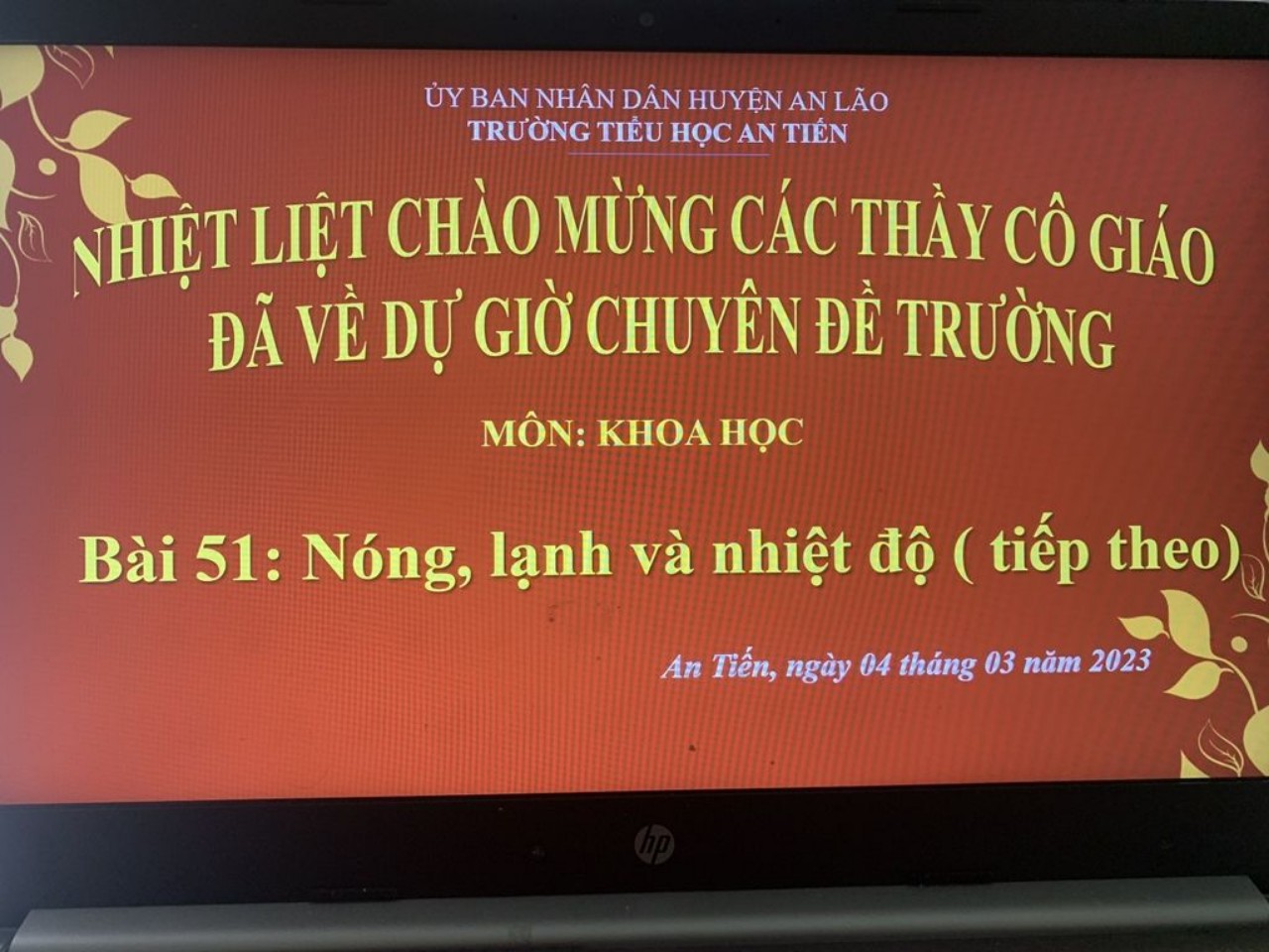 Thực hiện nhiệm vụ năm học 2022- 2023, kế hoạch chuyên môn tháng 3, sáng ngày 04/3/2023, Khối 4 Trường Tiểu học An Tiến huyện An Lão - Hải Phòng thực hiện thành công chuyên đề trường: Dạy môn Khoa học lớp 4 theo định hướng giáo dục STEM qua bài 51: Nóng, lạnh và nhiệt độ (Tiếp theo).
