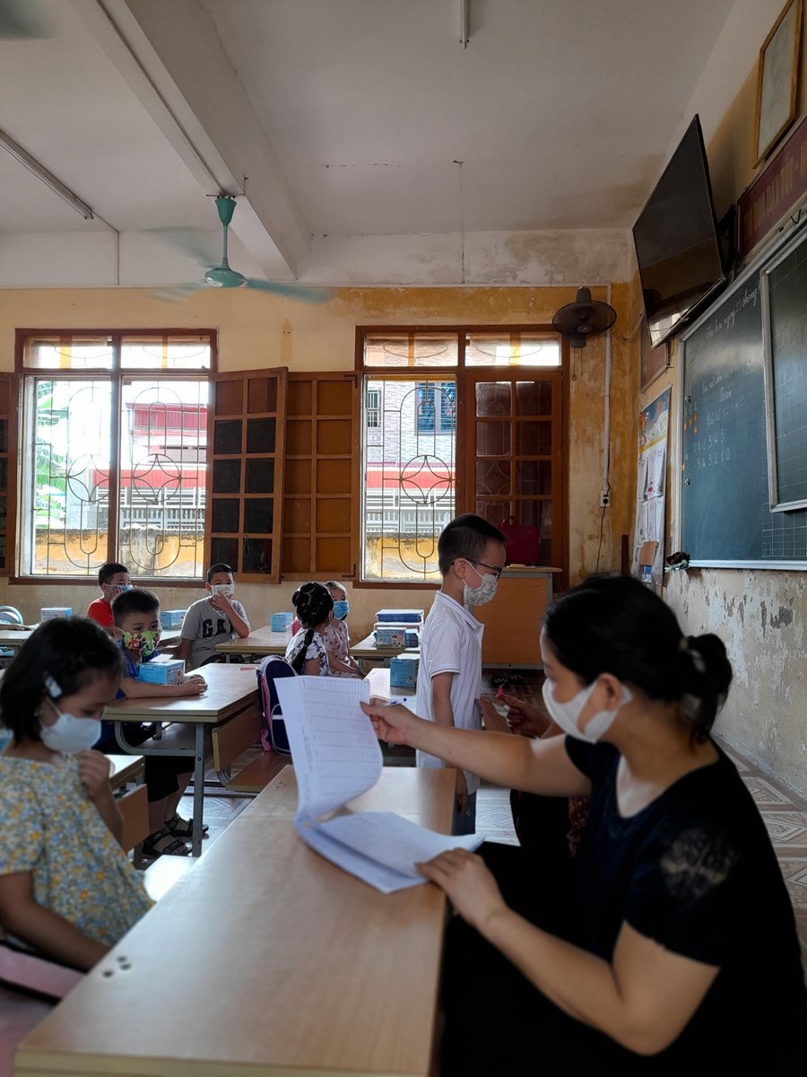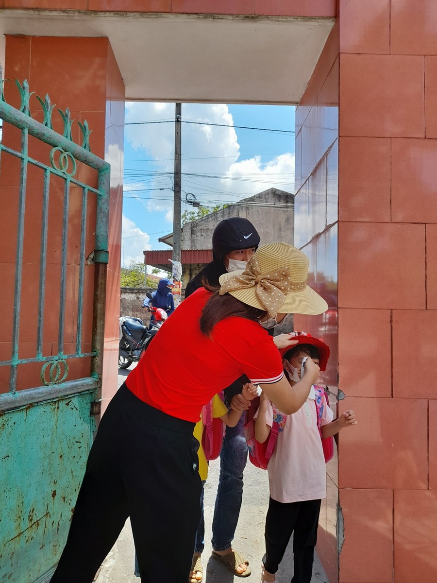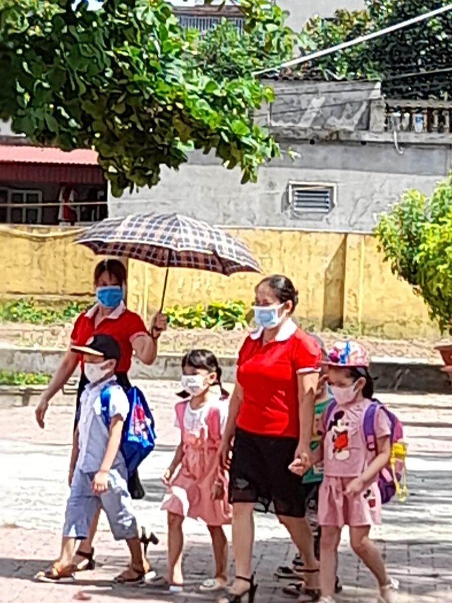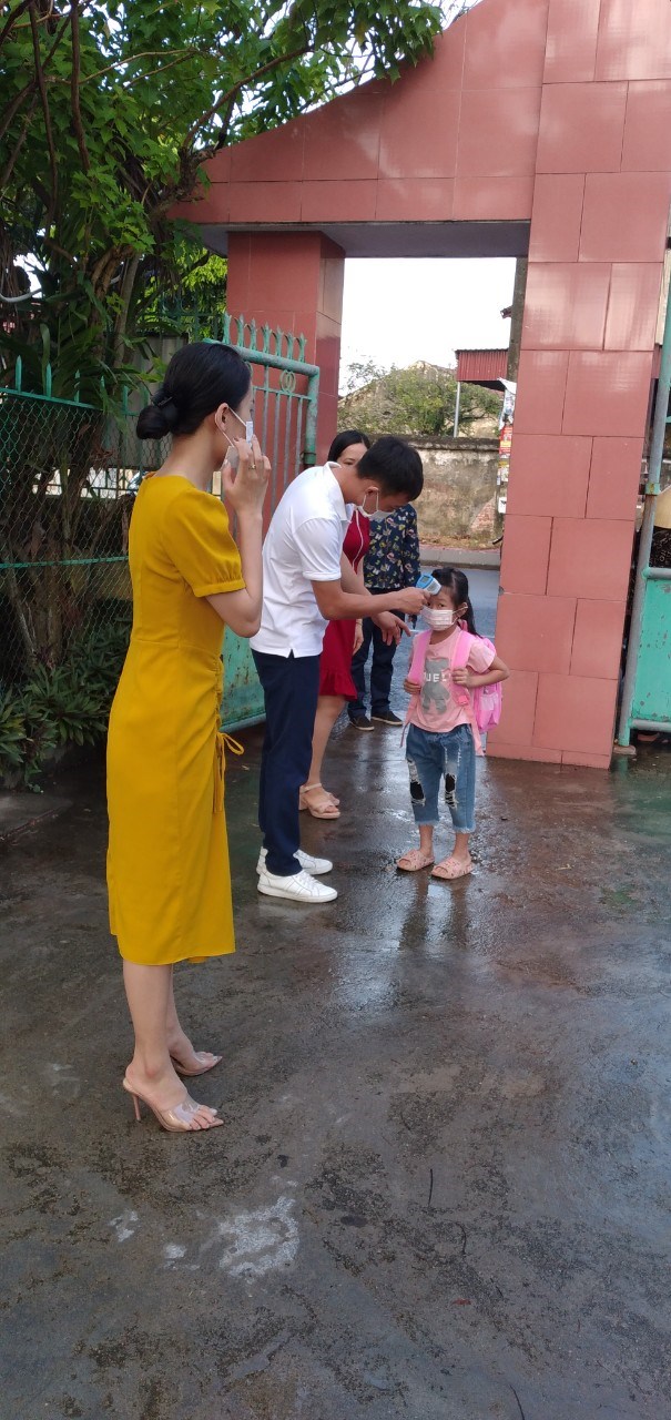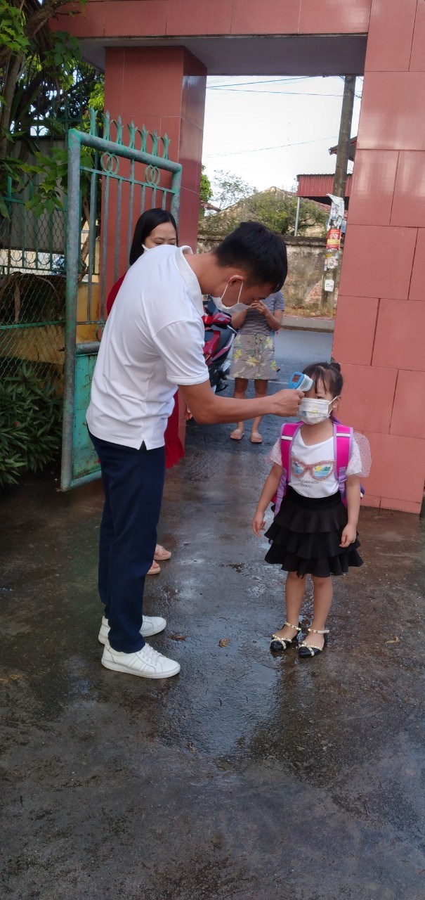 Ngay từ ngoài cổng trường, được sự hướng dẫn của các bậc PH cùng các thầy cô giáo, bạn nào cũng tự giác thực hiện tốt quy định phòng dịch. Tất cả các em đều đeo khẩu trang, được thầy cô đo thân nhiệt trước khi vào trường; bạn nào cũng ý thức sát khuẩn tay, vệ sinh sạch sẽ.