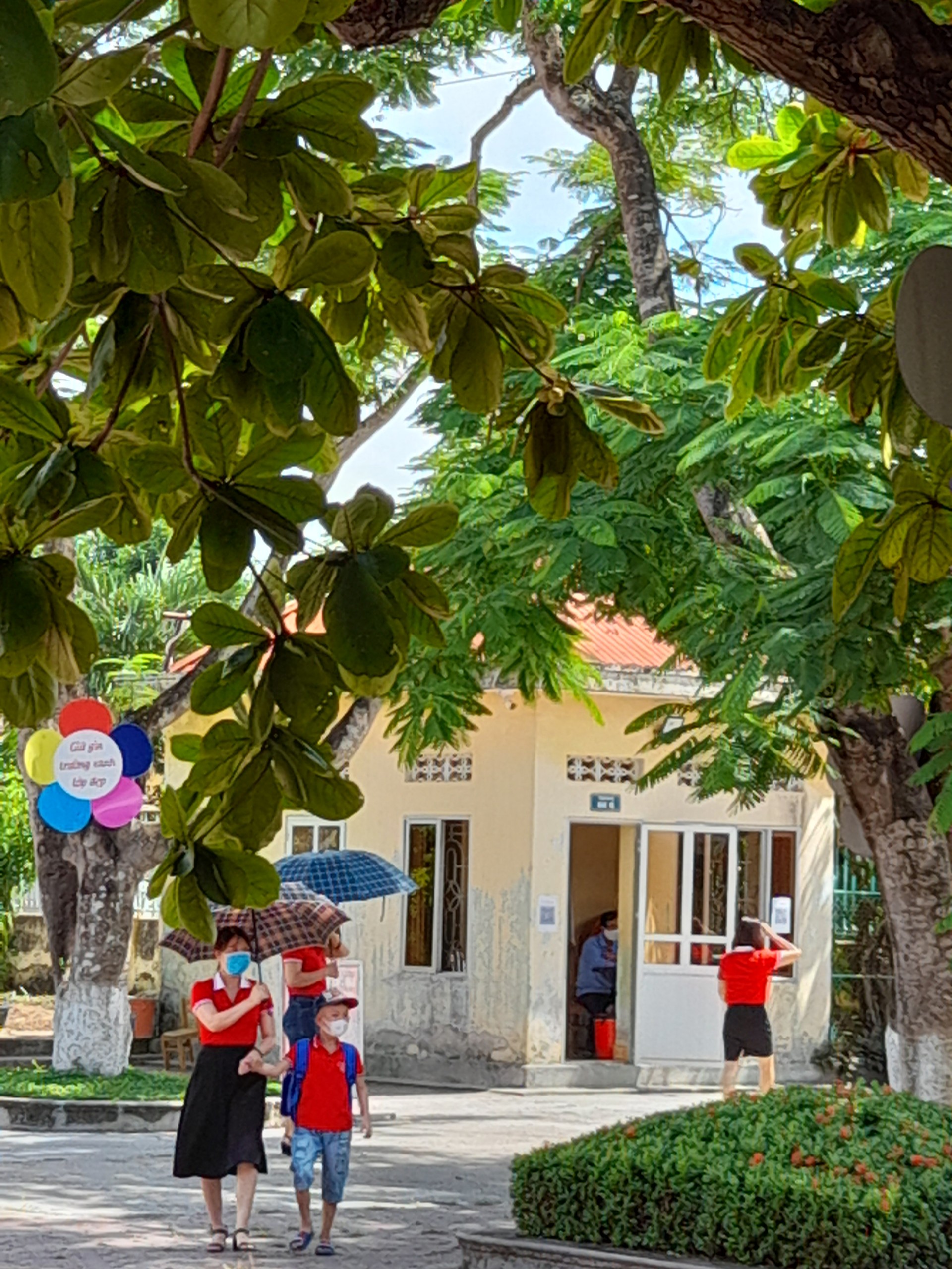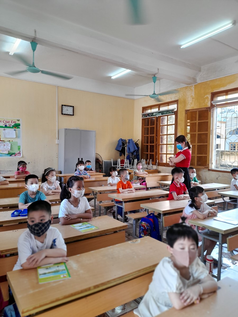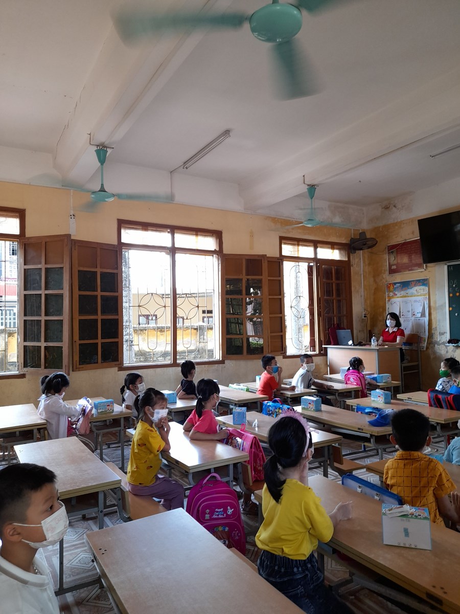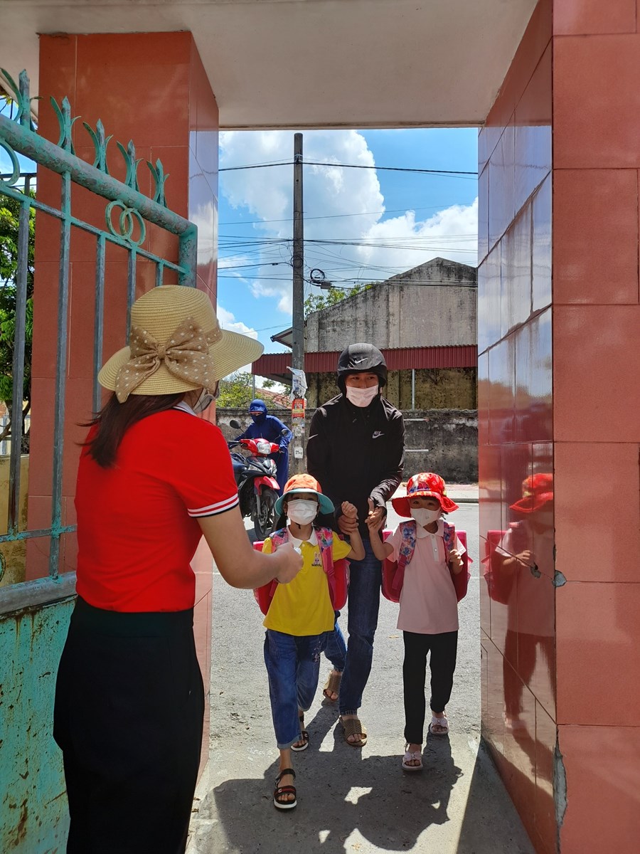 Ngay từ ngoài cổng trường, được sự hướng dẫn của các bậc PH cùng các thầy cô giáo, bạn nào cũng tự giác thực hiện tốt quy định phòng dịch. Tất cả các em đều đeo khẩu trang, được thầy cô đo thân nhiệt trước khi vào trường; bạn nào cũng ý thức sát khuẩn tay, vệ sinh sạch sẽ.